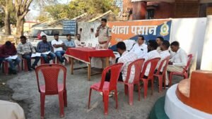 पुलिस अधीक्षक महोदय श्री सिद्धार्थ तिवारी के आदेशानुसार एवं अतिरिक्त पुलिस अधीक्षक श्री नितीश ठाकुर के निर्देशन तथा अनुभागीय पुलिस अधिकारी श्री विजय सिंह राजपूत के मार्गदर्शन में, होली पर्व को शांतिपूर्ण, सौहार्दपूर्ण एवं विधि-सम्मत ढंग से संपन्न कराने के उद्देश्य से थाना पसान द्वारा थाना परिसर में एक व्यापक शांति बैठक का आयोजन किया गया।