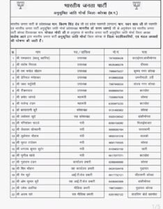 भारतीय जनता पार्टी के प्रदेशाध्यक्ष मान. किरण सिंह देव जी एवं प्रदेश महामंत्री (संगठन) मान. पवन साय जी की सहमति एवं भारतीय जनता पार्टी अनुसूचित जाति मोर्चा प्रदेशाध्यक्ष माननीय डॉ सनम जागड़े जी के अनुमोदन एवं भारतीय जनता पार्टी कोरबा जिलाध्यक्ष मान. गोपाल मोदी जी के अनुशंसा से भारतीय जनता पार्टी अनुसूचित जाति मोर्चा जिला अध्यक्ष राजेश लहरे द्वारा भारतीय जनता पार्टी अनुसूचित जाति मोर्चा जिला कोरबा के जिला पदाधिकारियों, एवं मंडल अध्यक्षों की घोषणा की गई है जिसमें प्रमोद जांगड़े और सूरज टांडेकर को जिला महामंत्री और जिला मंत्री का दायित्व दिया गया है जो की उत्कृष्ट कार्यो के कार्यों के लिए जाने जाते हैं जिसमें अनुसूचित जाति संगठन व भारतीय जनता पार्टी संगठन को एक मजबूती प्रदान होगी