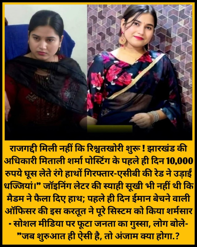 📌 रिपोर्ट्स के मुताबिक, अधिकारी मिताली शर्मा पर 10,000 रुपये रिश्वत लेने का आरोप है