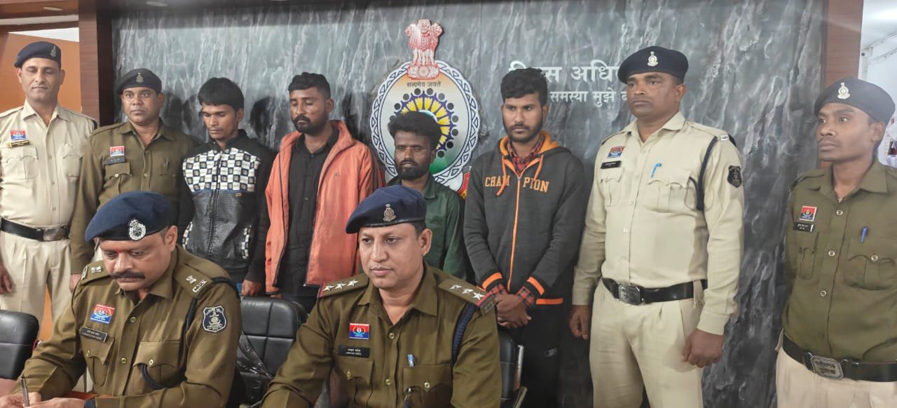 सक्ती – सक्ति थाना क्षेत्र अंतर्गत ग्राम परसदा खुर्द में फर्जी आबकारी पुलिस बनकर घर में घुसकर तलाशी और पैसों की मांग करने वाले चार आरोपियों को सक्ती पुलिस ने गिरफ्तार कर न्यायिक रिमांड पर भेज दिया है। आरोपियों के कब्जे से घटना में प्रयुक्त दो मोटरसाइकिल, तीन मोबाइल फोन और खाकी वर्दी जब्त की गई है। मामला अपराध क्रमांक 423/2025, धारा 308(2), 319(2), 318(4), 331(4), 204, 205, 112, 351(2), 3(2) बीएनएस के तहत दर्ज किया गया है। प्रार्थी गनपत लाल लहरे ने थाना सक्ती में रिपोर्ट दर्ज कराई कि उसकी बहन अमरिका बाई ने फोन पर बताया कि रात में पांच व्यक्ति घर में घुसकर शराब बेचने और पिलाने का आरोप लगाते हुए फर्जी आबकारी पुलिस बनकर डराते-धमकाते हुए पैसे की मांग कर रहे हैं। मौके पर पहुंचने पर एक नकली पुलिसकर्मी भाग गया, जबकि चार संदिग्धों को ग्रामीणों की मदद से पकड़ लिया गया।