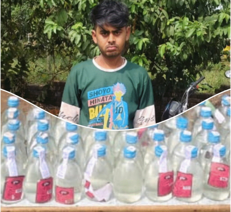 बिलासपुर – थाना पचपेड़ी पुलिस ने चेतना विरुद्ध नशा एवं प्रहार अभियान के तहत अवैध शराब बिक्री के खिलाफ कार्रवाई करते हुए एक आरोपी को गिरफ्तार किया है। आरोपी के कब्जे से 67 पाव (कुल 12.600 लीटर) देशी प्लेन शराब बरामद की गई है, जिसकी कीमत लगभग 5360 रुपये आंकी गई है। पुलिस को मुखबिर से सूचना मिली थी कि ग्राम जोंधरा में एक युवक अवैध रूप से शराब की बिक्री कर रहा है। सूचना पर पुलिस टीम ने मौके पर पहुंचकर करण थवाईत पिता स्व. विजय थवाईत उम्र 19 वर्ष, निवासी ग्राम जोंधरा को पकड़ लिया। तलाशी में आरोपी के पास से भारी मात्रा में शराब जब्त की गई।