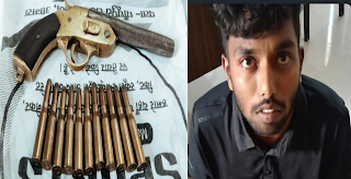 जब पुलिस ने आरोपी के नाम से बुक किए गए कमरे की तलाशी ली, तो उसके सामानों में से एक देशी कट्टा और 20 से अधिक जिंदा कारतूस मिले। इससे पुलिस में हड़कंप मच गया।