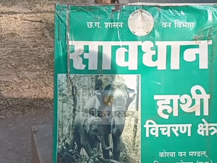 कोरबा शहर से 8 किमी दूर दंतैल हाथी, मार्ग सील:वन विभाग ने बालको-कॉफीपॉइंट मार्ग पर आवाजाही रोकी, लोगों से न जाने की अपील की