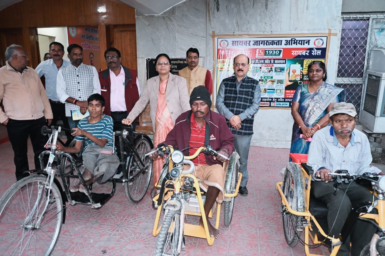 कोरबा 01 जनवरी 2026 – महापौर श्रीमती संजूदेवी राजपूत ने नगर पालिक निगम केरबा क्षेत्रांतर्गत गोपालपुर बस्ती निवासी रतिराम चौहान, रामपुर निवासी यूनोर्स राज व राताखार निवासी दिलीप कुमार को इलेक्ट्रिक ट्रायसिकल प्रदान की, उन्होने उन्हें अपनी शुभकामनाएं देते हुए उनके उज्जवल भविष्य की कामना की। इस मौके पर वरिष्ठ पार्षद अशोक चावलानी, वरिष्ठ नेत्री रूकमणी नायर, उपायुक्त बी.पी.त्रिवेदी, समाज कल्याण विभाग के अधिकारी हरिश सक्सेना, निगम सचिव रामेश्वर सिंह कंवर, मनोज राजपूत आदि उपस्थित थे।
