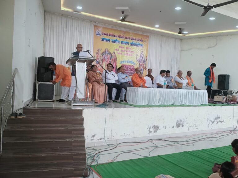 श्री भोजराम देवांगन ने बताया कि एकल अभियान द्वारा संचालित श्री हरि कथा योजना भारतीय संस्कृति, संस्कार और आध्यात्मिक चेतना को जन-जन तक पहुंचाने का सशक्त माध्यम बन रही है। उन्होंने कहा कि इस प्रकार की प्रतियोगिताएं बच्चों और युवाओं में आत्मविश्वास, मंच संचालन क्षमता और धार्मिक ज्ञान का विकास करती हैं। विशिष्ट अतिथि डॉ राजीव गुप्ता ने कहा कि सत्संग केवल धार्मिक आयोजन नहीं बल्कि समाज को जोड़ने और नैतिक मूल्यों को मजबूत करने का माध्यम है। प्रतियोगिता में विभिन्न ग्रामों एवं नगरों से आए प्रतिभागियों ने भक्ति संस्कृति और नैतिक मूल्यों से ओतप्रोत के सांथ श्री हरि कथा, भजन, प्रवचन एवं सांस्कृतिक