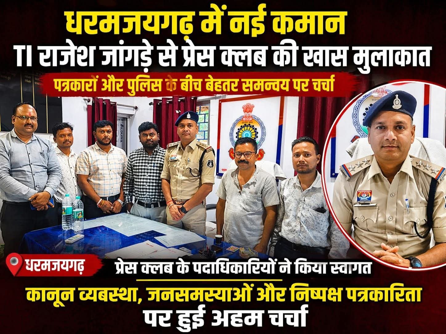 “धरमजयगढ़ थाने की नई कमान संभालेंगे TI राजेश जांगड़े, प्रेस क्लब संग हुई अहम मुलाकात”